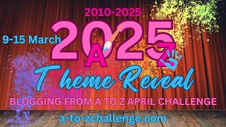 2025 will be my twelfth year of the ‘Blogging from A to Z April Challenge‘, where participants post twenty-six times, a letter a day for every day of the month except Sundays.